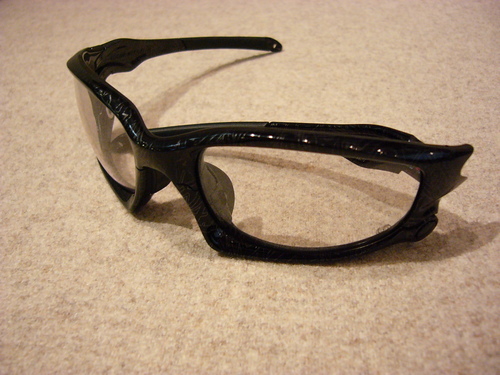 ブラックフレームにシルバーテキスト+調光クリアレンズです。