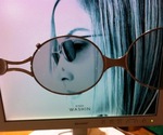 そこで偏光レンズを90度傾けてサングラスを作製すると・・・あら不思議、PC画面のテカテカ