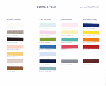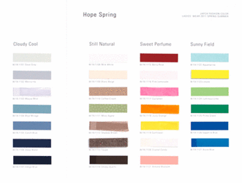 インターカラー(国際流行色委員会)という機関によって発表された国際的な流行色(正確は色合い)を参考にして、