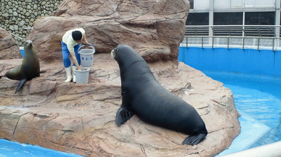 アシカはの餌やりもこんなに近くで見る事ができます。