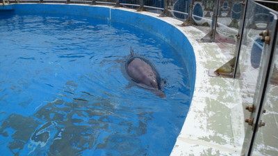 こちらのイルカ君は非常に人に馴れておりまして人が近づくとそばによって来てくれて色々と