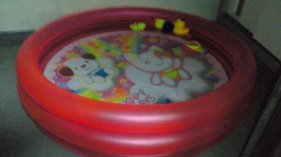 このプールを膨らませるだけで一苦労しました、空気入れをひたすら踏み続けベランダに水道が無いので何度も風呂場とベランダを行ったり来たりと汗だくになりながらようやく完成!