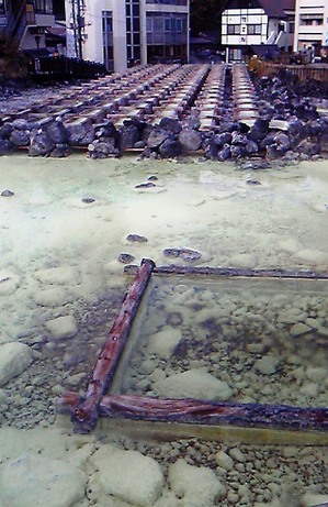 温泉街の中心には湯畑という場所があり、毎分4000リットルの温泉が湧き出ているので、硫黄の匂いが常に温泉街に充満していました。