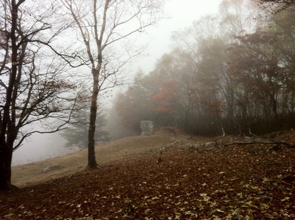 案の定、小雨が降り展望の全く無い中での登山を強いられました(気持ち萎えまくり)。