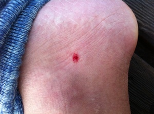 とにかく痛かったものですから☆さんに除去してもらい、靴下を脱ぎますとこんな感じでした。