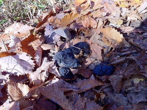 登り始めて約1時間、落葉の絨毯を気持ち良く歩いていると・・・