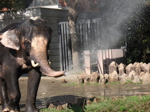 インド象が鼻から水を