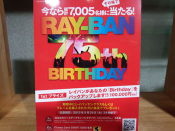 レイバンサングラスorメガネフレームお買上げの方にスクラッチカードをお渡ししております。