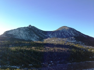 日が昇り、見上げた先には「天狗岳」が・・・。