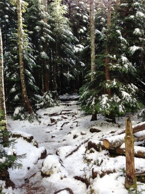 標高を上げるにつれ、登山道にだんだん雪が増えてきます。