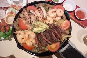 鉄板の上のお肉や野菜を、薬味などと一緒にトルティーヤで巻いて食べるのですが、もう絶品でした。