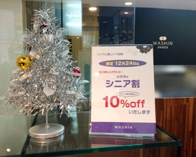 ただ今60歳以上方にシニア割りと称して、割引きセール実施中でございます。