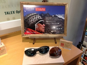 そしてこちらがタレックスが三浦さんの為だけに作ったエベレスト専用レンズ(非売品)。エベレストという世界一過酷な場所では紫外線だけでなく赤外線からも眼を守る必要があります。このレンズは紫外線・ブルーライト光線、そして赤外線からも眼を守ってくれるスペシャルレンズなのです!!