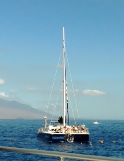 マウイ島ではモロキニ島という離島に船で行きシュノーケリングをしました。