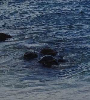 海ガメが住かにしている洞窟があるようで、何度か姿をあらわしてくれました。