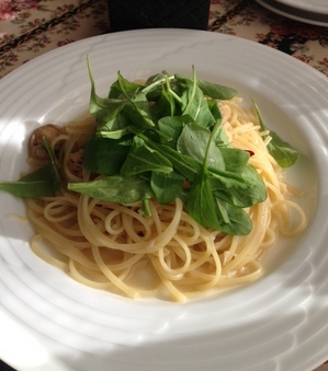 つぶ貝のペペロンチーノを食べましたが、すごいコリコリして、新食感でした☆