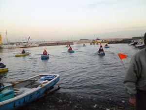 かなり沖まで漕ぎ出していたわれわれ、疲労困憊で帰還したところ、