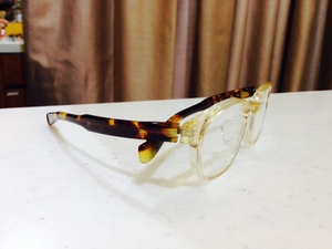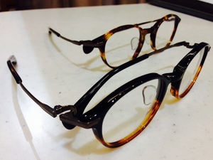 最近はこのようにセルフレームでも少しリムが細いものが人気。