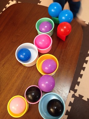 ボールを乗せて「い~ち、に~、さ~ん・・・」
