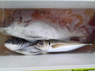 HEPPOさんの大アジ、大吟醸さんのワラサとアジ何と我々がいただいちゃいましたー