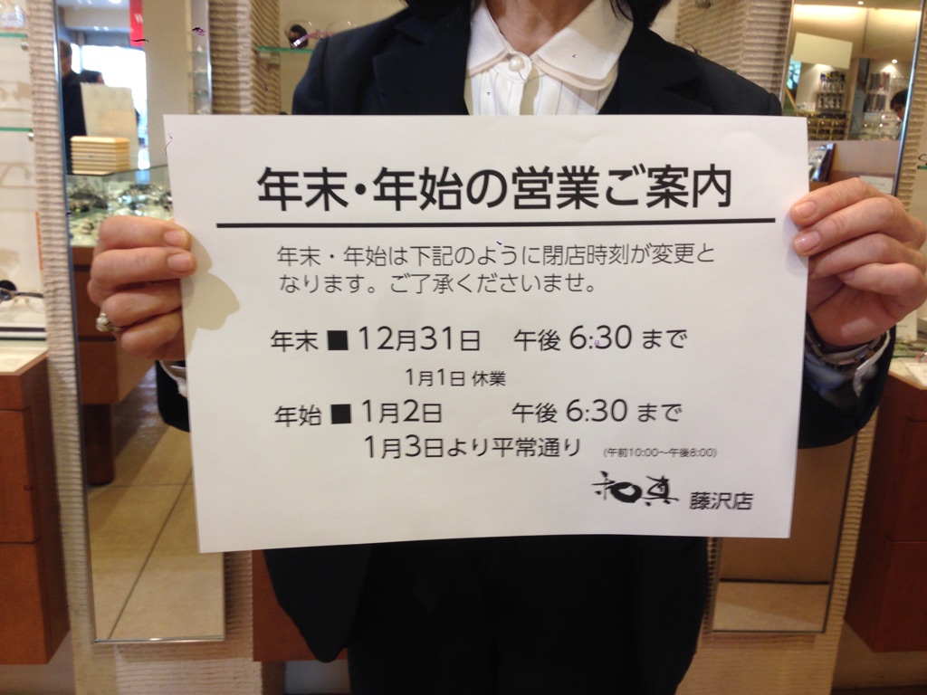 年末年始の藤沢店の営業時間をお伝えいたします。