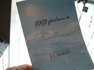 そうです。2011年3月1日にフォーナインズのフィールサンがデビューなのです。本日は太陽に向かって私もfeelsunしながら写真を、撮ってみました。