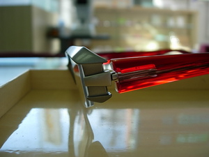 ヨコから見たテンプルのクリアー感の赤、吸い込まれそうです。