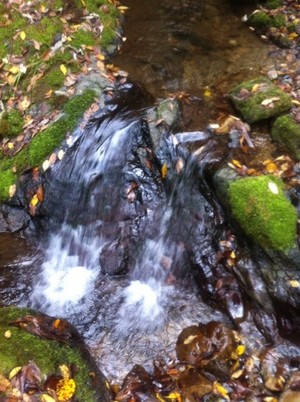 流れとは逆に上流へ行くと、一段と大きな水しぶきの音が。