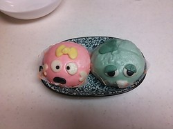 右)ガチャピンまん(チンジャオロース風)