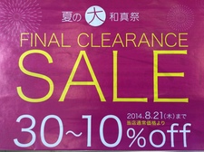 - FINALE CLEARANCE SALE 8/21まで (2014年08月13日)