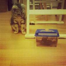 落ち着いたと思ったら、カブトムシが気になるらしい・・・。