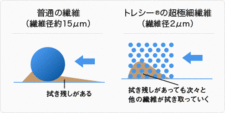東レの高分子化学の技術により、約2ミクロンの繊維を実現。超極細繊維が次々と油膜の中に入り込み汚れを拭き取ります。