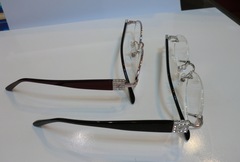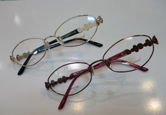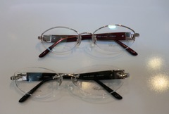 手前が縁なし(ツーポイント)で、奥がナイロール(上半分に縁があるタイプ)です。