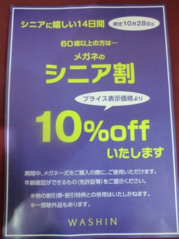 60歳以上のお客さまはメガネ一式ご購入の際、プライス表示価格より・・・