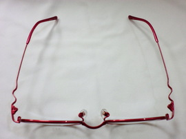 きれいな赤いフレームは掛けるだけで元気になりそうですね。