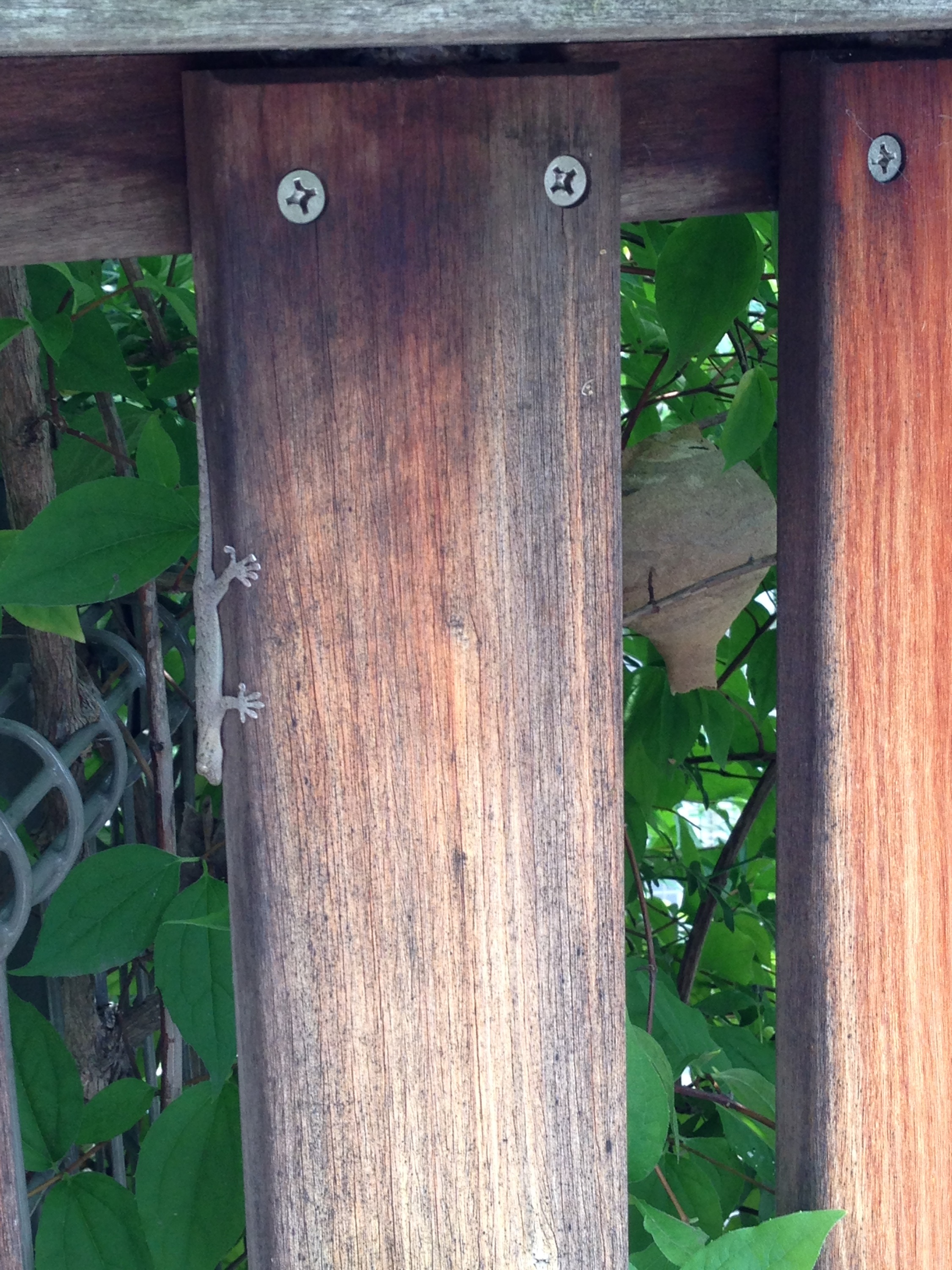 そこには綺麗な壺のような形をした蜂の巣が(写真を撮っていると、いきなりカナヘビも現れてびびる私)。