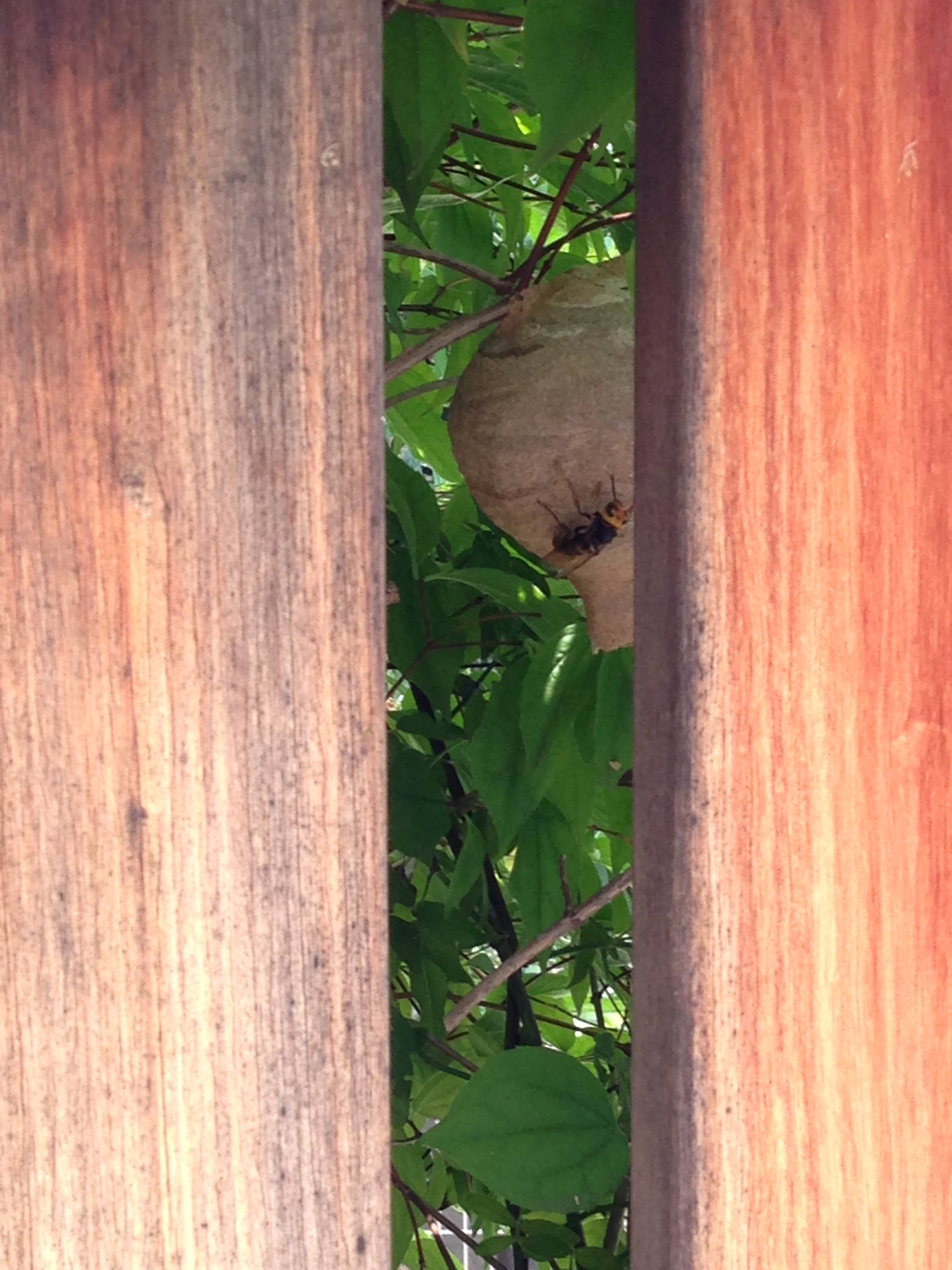 怖いので、しばらく蜂の動向を見守るも、茂みの中から一向に出てこない。