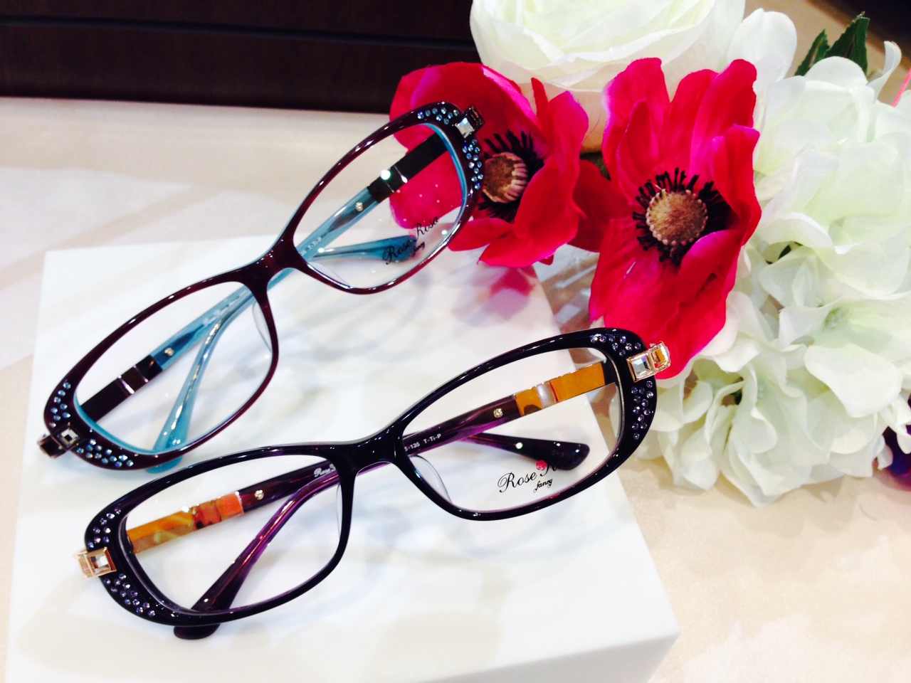 セルフレームのツヤとフロントにあしらわれたストーンの輝き!