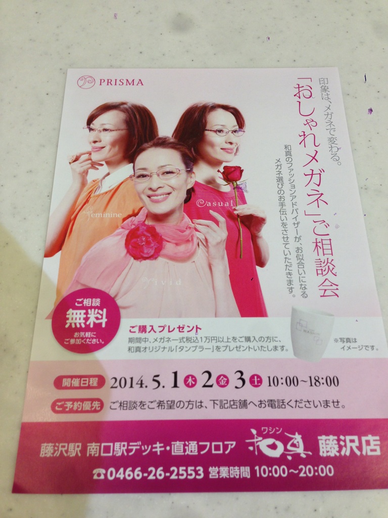 そんなわけで、『おしゃれメガネ』相談会のお知らせです。