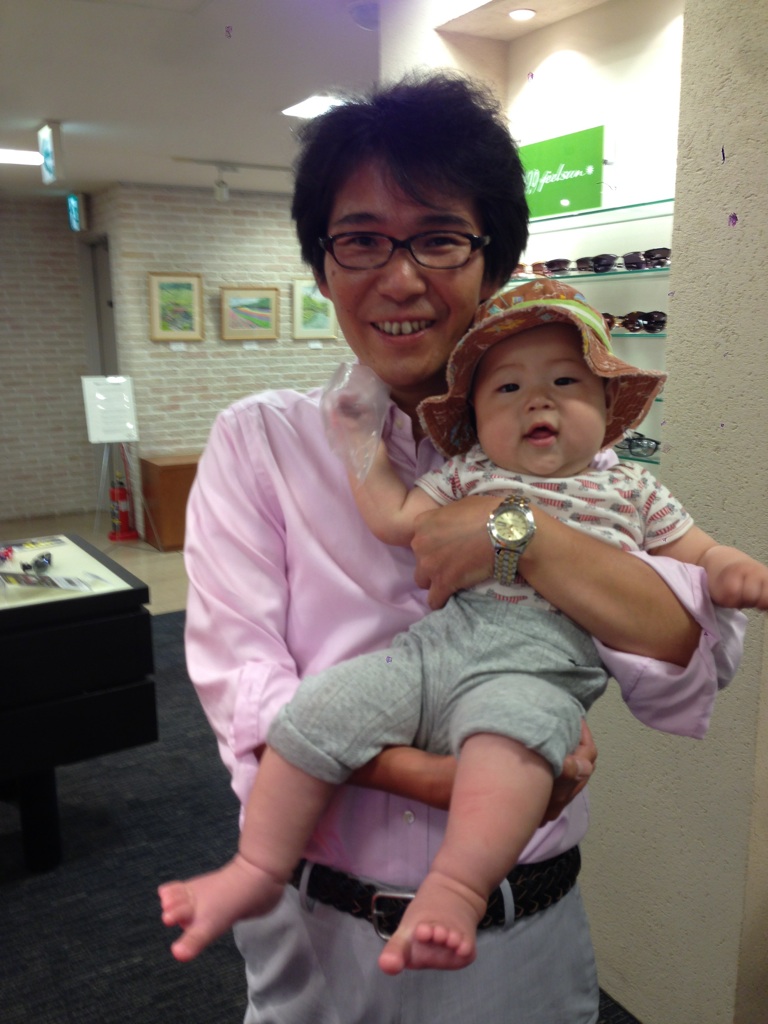 いつもなら、抱く子、あやす子をたいてい泣かせてしまう店長に対しエンジェルスマイルを炸裂させるわが子。いい子しゅぎる...。
