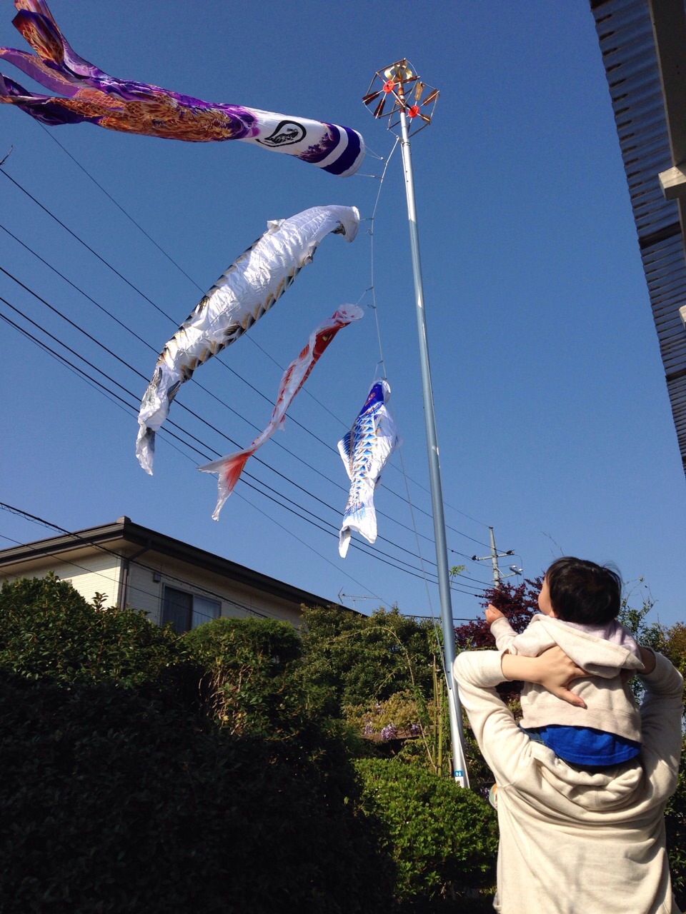 もうすぐこどもの日!ということで、息子の鯉のぼりを上げてもらいました。