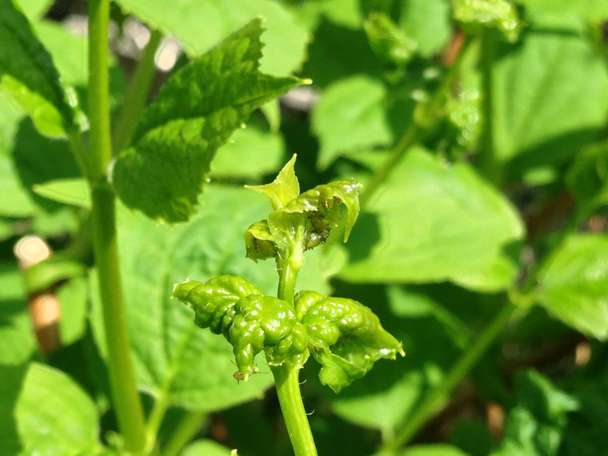 知らない間に葉っぱの裏や陰に隠れているアブラムシですが、見つける方法がひとつ。