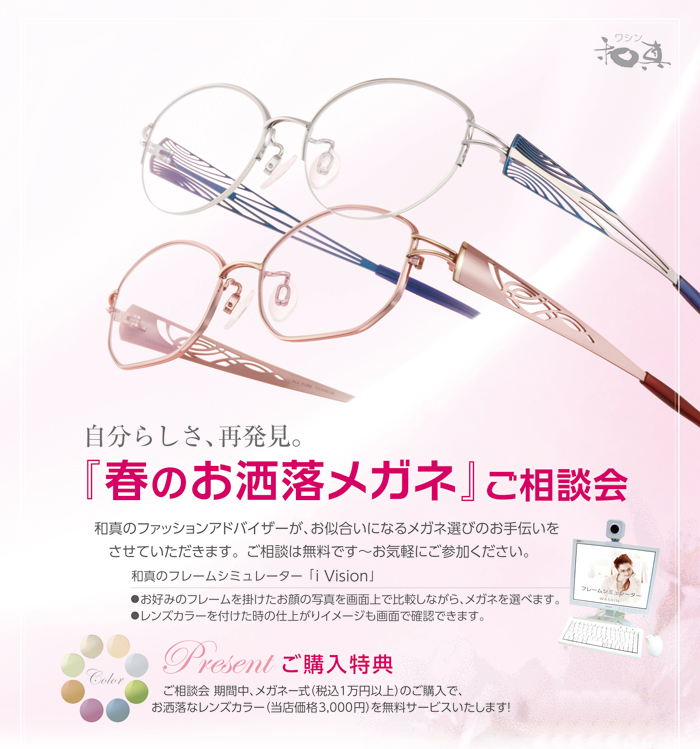 本日10日より12日まで、平塚店にて開催しております『春のお洒落メガネ』ご相談会です♪