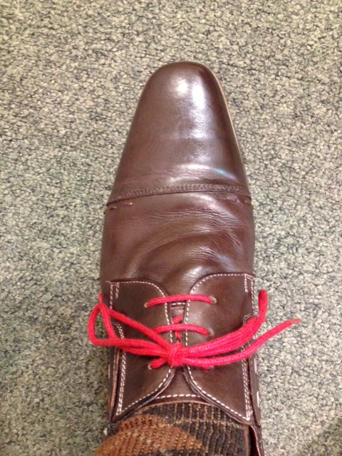 靴紐も赤。この靴はニューヨークで購入しました。