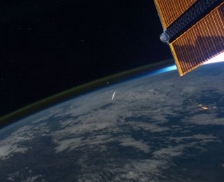 NASAが先日発表した国際宇宙ステーション(ISS)から撮影した、ペルセウス座流星群だそうです。