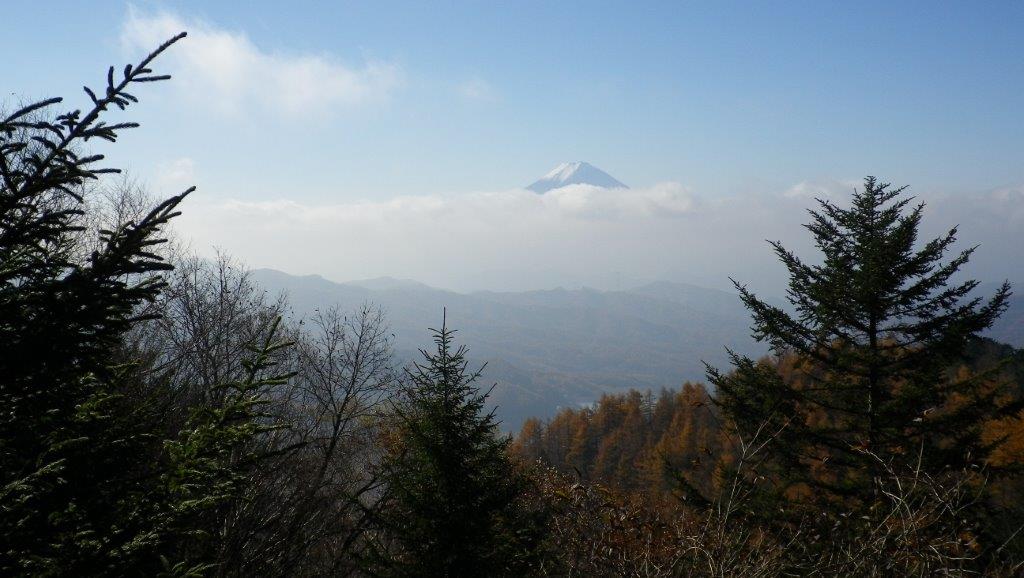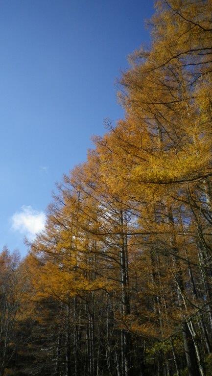 標高約1700mの上日川峠から、カラマツの黄色い紅葉を見ながら一気に300m程登ります。