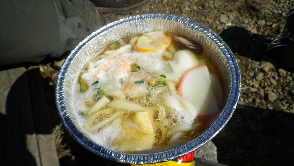 それでも様子が変わらない為、とりあえず非難小屋まで歩いて、小屋の陰でお昼ごはんを食べることに。