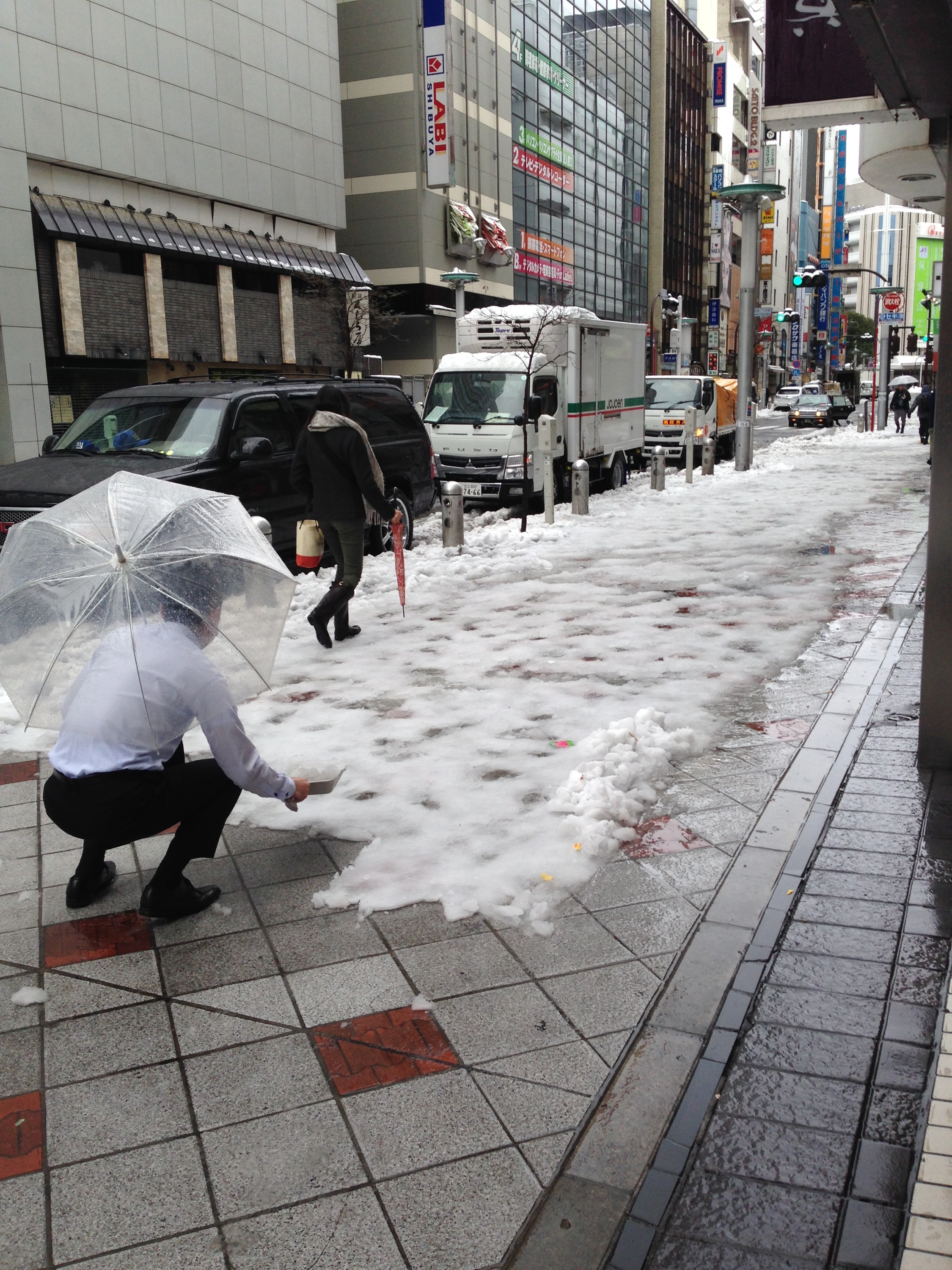 本日も渋谷の街には雪の塊があちらこちらに・・・