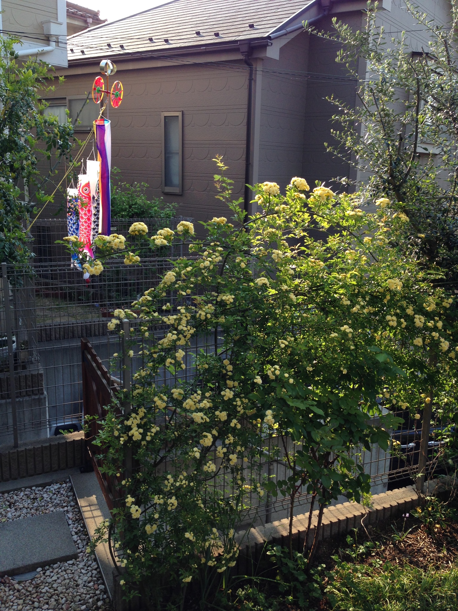 ここ数日のあたたかさで、我が家のモッコウバラが咲き始めました~!