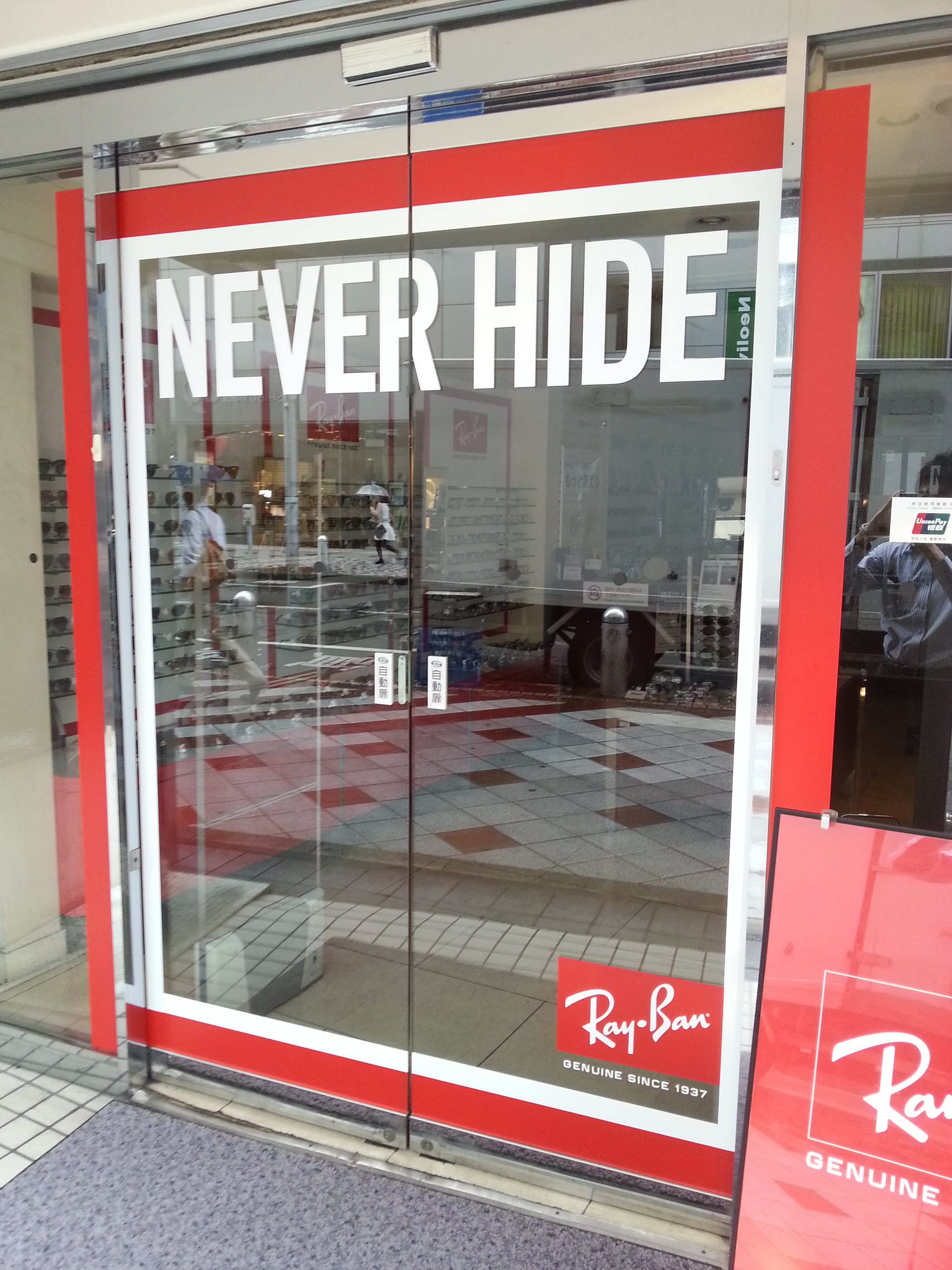 入り口自動ドアがレイバンへと変身いたしました!